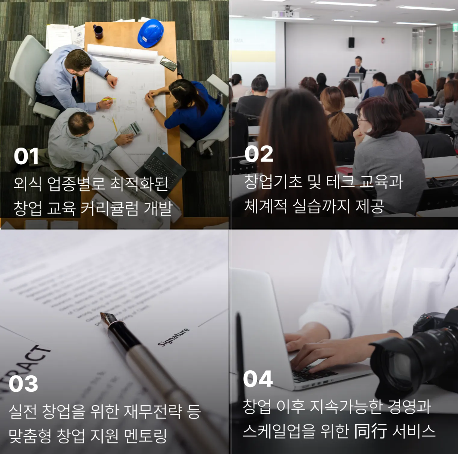 6,500개의 스타트업 교육과 심사를 통해 개발한 커리큘럼을 바탕으로 테크 기반의 교육 프로그램 제공